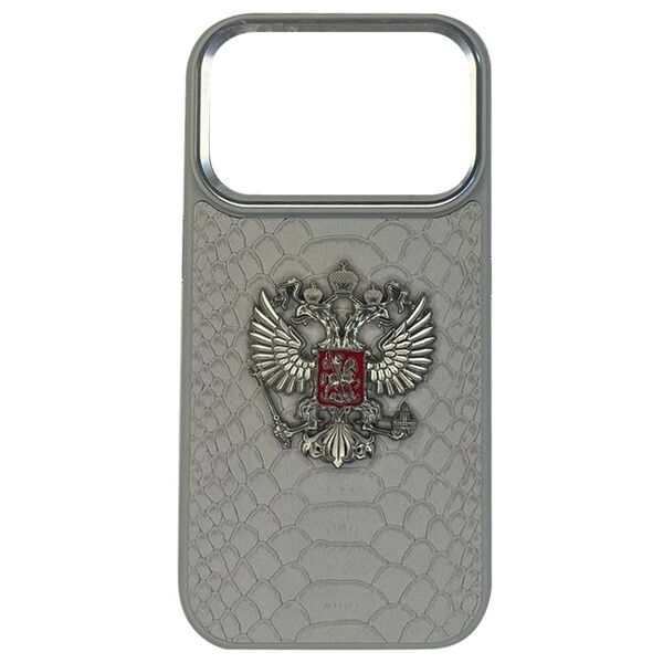 Чехол для iPhone 17 Pro накладка кожа Герб России Серый