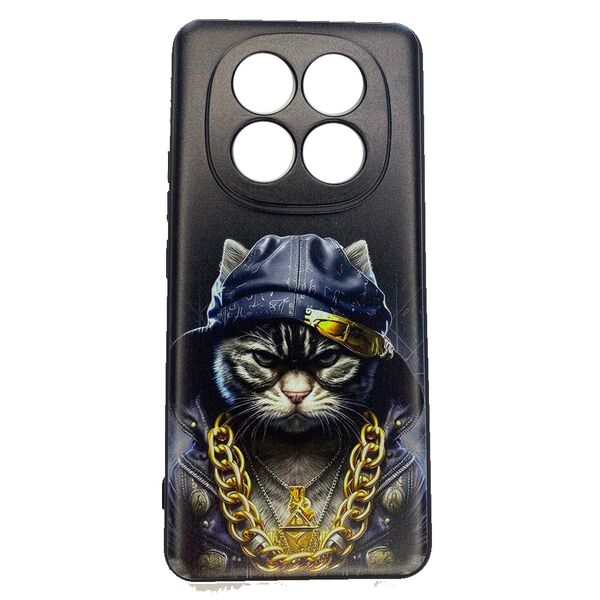 Чехол Xiaomi Redmi Note 14 Pro/Note 14 Pro Plus 5G/Poco X7 накладка принт Кот с цепью Черный