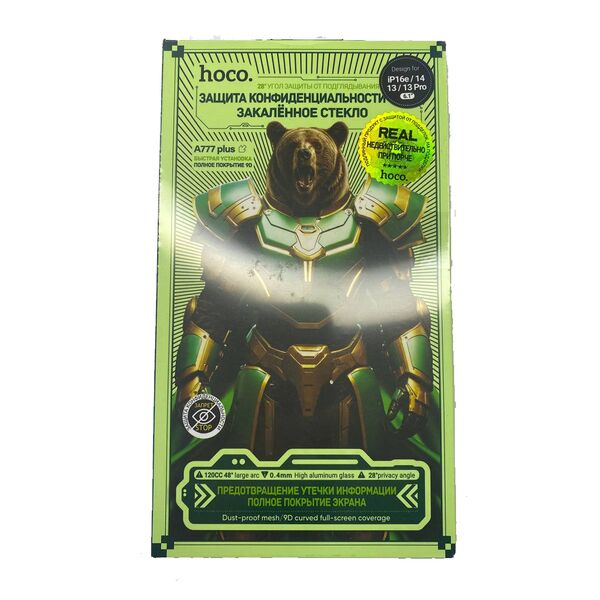 Защитное стекло для iPhone 16e/14/13/13 Pro Hoco антишпион A777 Plus Черный
