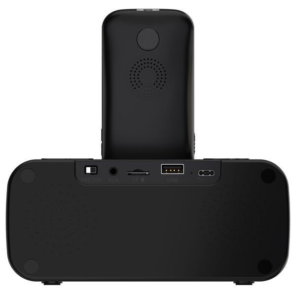Док-станция обладает возможностью принимать и отклонять входящие вызовы, является bluetooth-колонкой и радиоприёмником.