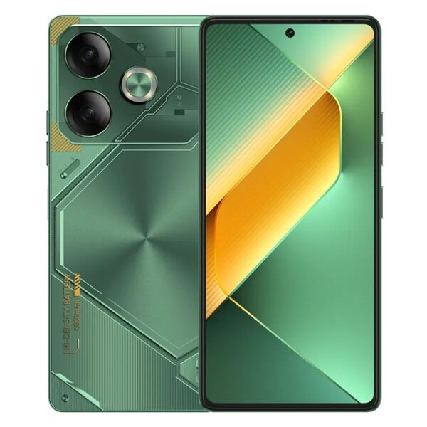 Смартфон Tecno POVA 6 256 ГБ в зеленом пластиковом корпусе оснащен экраном с диагональю 6.8”, защитой от загрязнений и царапин. AMOLED-матрица сохраняет яркость и четкость изображения, отображает 16 млн цветов. Разрешение 2436x1080 dpi удобно для чтения и просмотра мультимедиа. Устройство дополнено подсветкой корпуса, встроенным в экран сканером отпечатков пальцев и функцией распознавания лица. Tecno POVA 6 с поддержкой SIM-карт и мобильной связи 4G оснащен емкой АКБ на 6000 мА∙ч с ускоренной зарядкой. Тройная основная камера с двойной LED-вспышкой делает четкие и красочные фото при любом освещении. Есть режимы портретной и макросъемки, эффект боке. Фронтальная камера на 32 Мп со встроенной вспышкой поддерживает съемку в темноте.