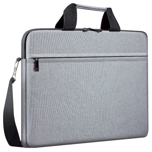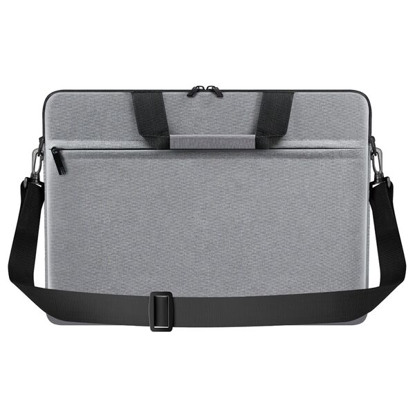 Усиленные боковины, плоская форма, передний внешний карман на молнии, регулируемый плечевой ремень, может крепиться к ручке футляра для прокатки, надежная защита от повреждений и пыли.