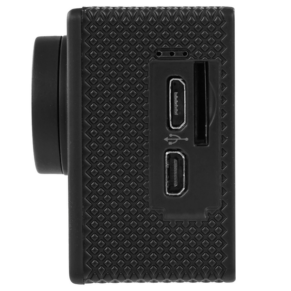 Кнопка включения/переключения режимов. Задний дисплей. Видеосъемка с интервальным и покадровым воспроизведением, циклическая запись. Пульт дистанционного управления. Ремешок для пульта дистанционного управления. Водонепроницаемый корпус.
