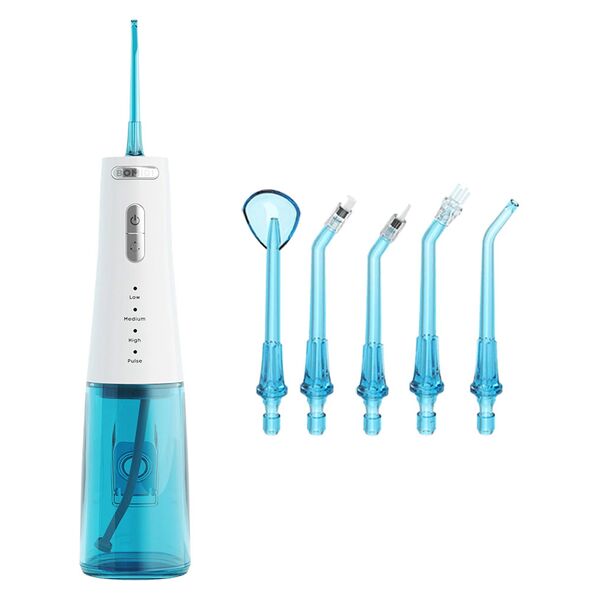 Ирригатор портативный Bomidi D3 Pro - имеет 7 режимов работы, водонепроницаемый корпус, 1400-1800 мощных пульсирующих струй в минуту. Ирригатор помогает очистить ту часть зубов, с которыми не может справиться зубная щётка. Чистка не занимает много времени, и отлично защищает ваши зубы. Гипоаллергенные материалы Bomidi D3 Pro успешно прошел сертификацию FDA*, которая подтвердила безопасность материалов, используемых в устройстве. Насадки: для струйной чистки, для чистки имплантов и коронок, для чистки языка, ортодонтическая (для брекетов), пародонтологическая (для десен). Объем резервуара: 300 мл.