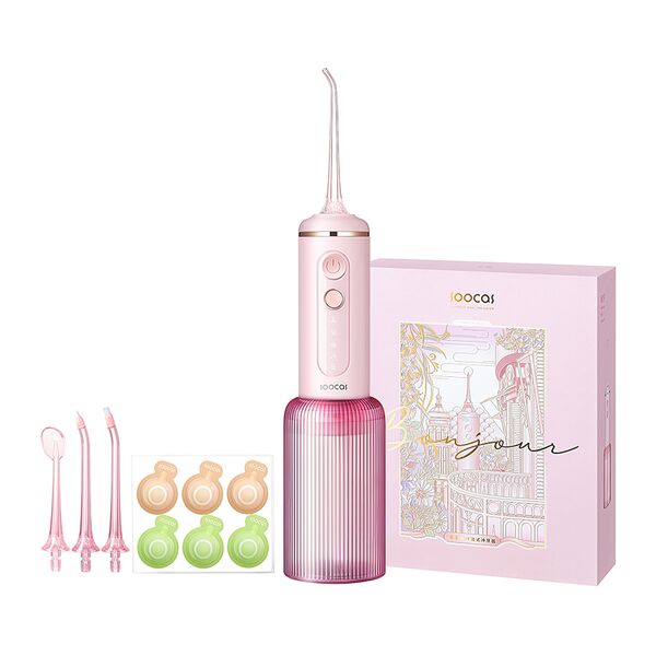 Емкость резервуара 230 мл. Влагозащита IPX7. 4 насадки: для струйной чистки, ортодонтическая, для чистки языка и для пародонтального кармана. Насадки способны вращаться на 360 градусов. 3 уровня давления струи. 4 режима работы: 1. для чувствительных зубов; 2. стандартный для ежедневного использования; 3. массаж десен выполняет функцию улучшения их кровообращения, тем самым оказывая укрепляющий эффект; 4. для ортодонтических конструкций (протезы, брекеты и т. п.). Эффект памяти девайса автоматически активирует тот режим, который использовался последним. В комплект входит освежающая жидкость.