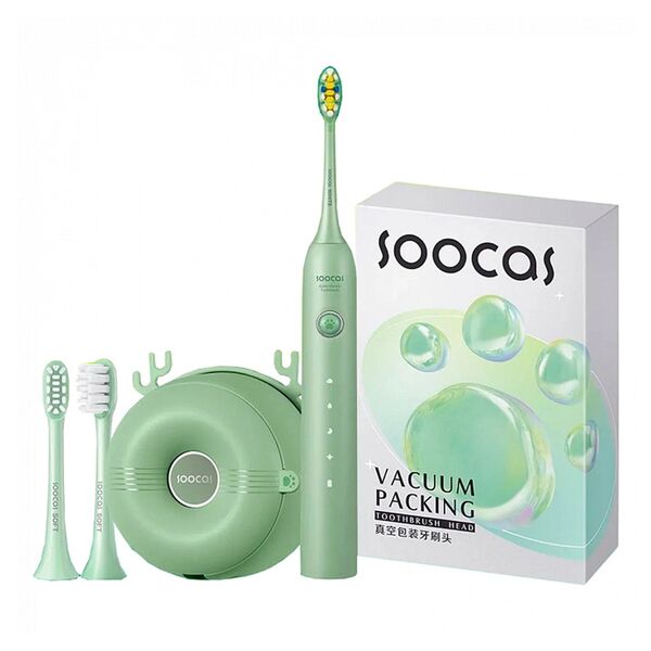 Электрическая зубная щетка с футляром для стерилизации. Устройство эффективно очищает зубы и обеспечивает уменьшение зубного налета за счет высокочастотных колебаний. 4 режима работы: стандартная очистка, деликатная чистка, полировка, отбеливание. У щетки предусмотрено автоматическое отключение через 2 минуты работы. Каждые 30 секунд щетка дает сигнал, приостановив работу, что пора перейти к очистке следующей зоны. Насадка для деликатного очищения зубов с обратной стороны оснащена специальной силиконовой поверхностью, с помощью которой можно очистить язык от налета. 2 насадки: средняя жесткость, мягкая. Степень влагозащиты IPX8. Индикатор уровня заряда на корпусе.