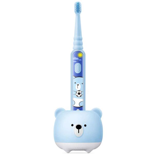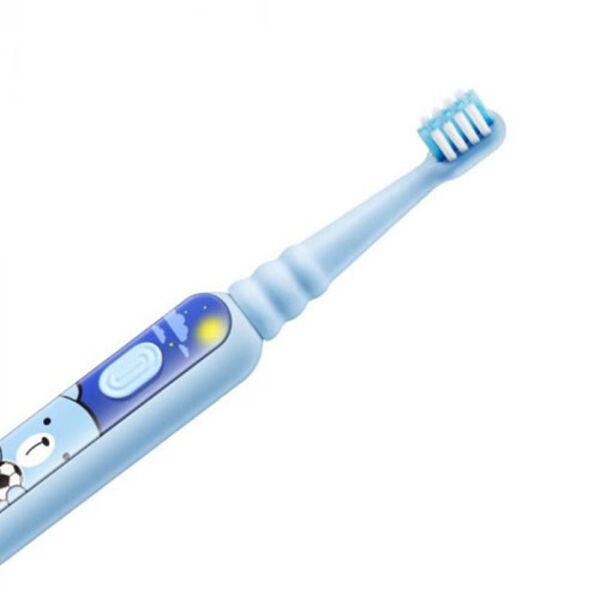 Электрическая зубная щетка имеет мощный мотор, частота звуковых колебаний которого 26-31 тысячи раз в минуту. Сам корпус детской зубной щетки «обвернут» мягкой пищевой резиной, что защищает нежный рот ребенка от повреждений.