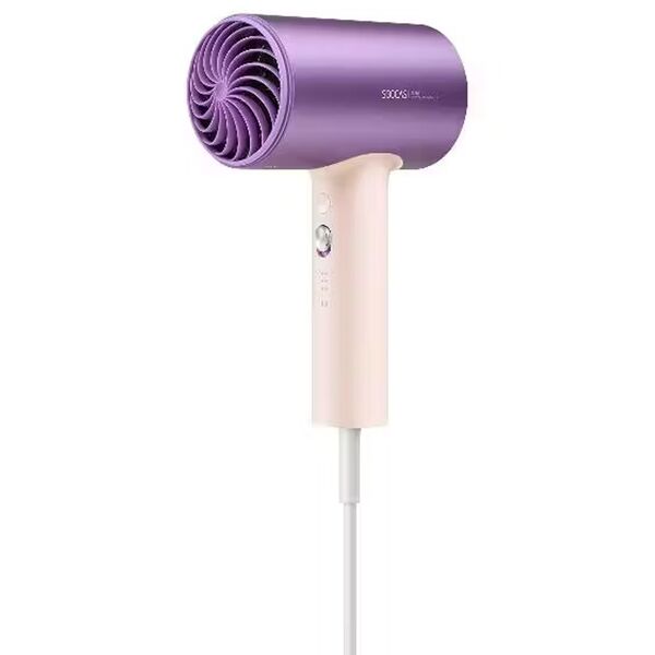 Фен оснащен ионизатором, сохраняющим естественную влагу в структуре локонов и обеспечивающим их гладкость без риска повреждения. Независимая регулировка температурного и скоростного режима позволяет подобрать вариант быстрой сушки или деликатной укладки. Корпус устройства Т-образной формы выполнен из сплава алюминия в сочетании с ABS-пластиком.