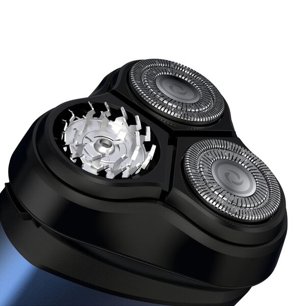 Сухое и влажное бритье. Встроенный триммер. Скорость вращения 7500 об./мин. 3 бритвенные головки. Класс водостойкости IPX7.