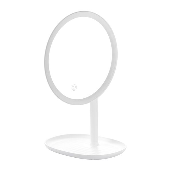 Угол наклона зеркала 45 градусов. Подставка в виде лотка, куда удобно положить косметику.
