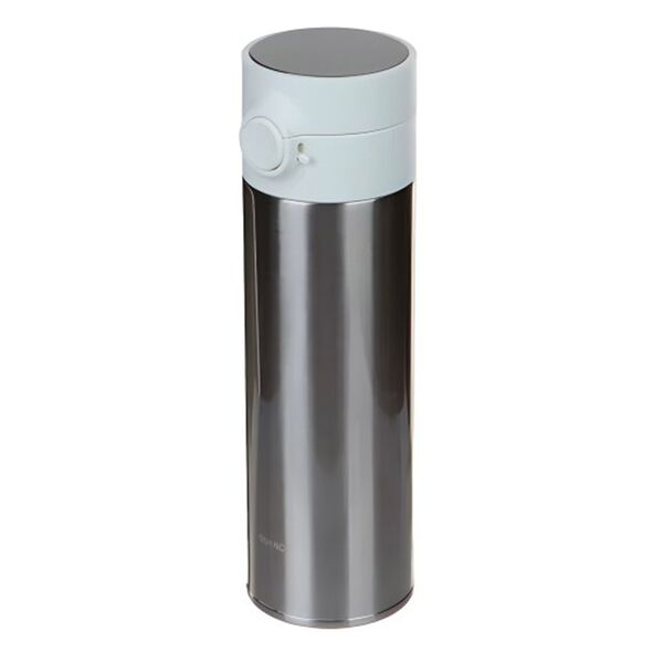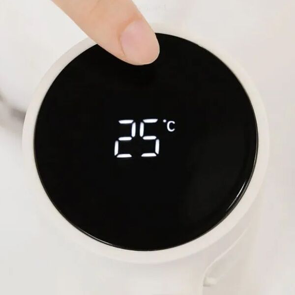 Объем термокружки составляет 480 мл. Конструкция позволяет поддерживать температуру жидкости в течение 6 часов. В верхней части крышки находится OLED-дисплей, на котором отображаются данные о температуре находящейся в термосе жидкости. Информация передается с помощью встроенного температурного датчика. Для предотвращения случайного открытия термоса предусмотрены кнопка закрытия и замочный механизм с правой стороны корпуса.