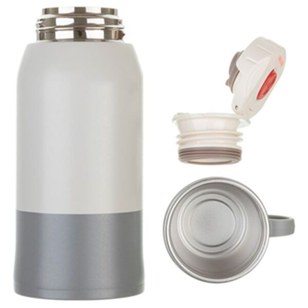 Обеспечивает высокую термоизоляцию, сохраняя температуру напитков в течение длительного времени. С его помощью всегда можно взять с собой какой-либо горячий напиток или даже суп. Он пригодится как школьнику, так и заядлому путешественнику. Двухслойная вакуумная технология и 5-слойная конструкция корпуса надежно сохраняют тепло на протяжении 24 часов. При комнатной температуре 25°C ± 2°C, закрытый термос с водой температурой 95°C ± 1°C, в течение 24 часов сохраняет температуру выше 50°C. Многофункциональная внешняя крышка с ручкой очень удобна при переноске. В открытом состоянии, крышка термоса может применяться как кружка. Термос изготовлен из высококачественной нержавеющей стали, которая не только обеспечивает прочность и долговечность, но и защищает напитки от контакта с пластиком. Кроме того, внутренняя часть термоса покрыта специальным слоем, который предотвращает образование конденсата и сохраняет температуру напитков.
