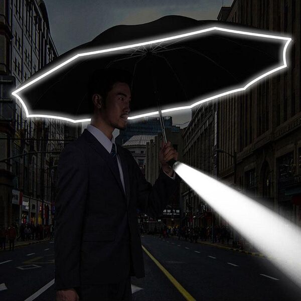 Встроенный фонарик, светоотражающая лента, сложение мокрой стороной внутрь.