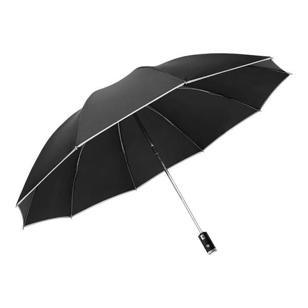 В устройстве используется автоматизированный механизм, обеспечивающий открывание и складывание девайс нажатием всего одной кнопки. Присутствует система обратного складывания купола. Это означает, что мокрая часть тканевой поверхности будет сложена не наружу, а внутрь зонта, позволяя удерживать влагу. Благодаря такому механизму складывания вы можете хранить зонт в вертикальном положении, что позволит ему занимать меньше места и более быстро сохнуть благодаря беспрепятственному скатыванию капель. Для того, чтобы устройство было устойчиво к резким порывам ветра, его каркас изготавливается из алюминиевого сплава и стекловолокна, а также нержавеющей стали и тефлона. Зонт защитит от ультрафиолетового излучения солнца. Девайс получил индекс защиты UPF50+, что свидетельствует о блокировании ультрафиолетового излучения от 97,5 до 99%. Длина в сложенном виде 30 см.