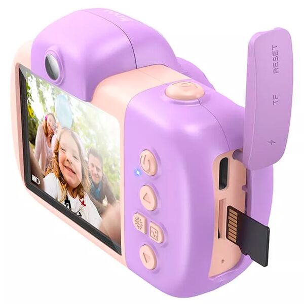Hoco DV201 — детский цифровой фотоаппарат, предназначенный для детей от 1 года и старше. Устройство позволяет делать снимки и записывать видео, что развивает творческие навыки ребёнка. В комплект входят: фотокамера, ремешок для удобного ношения;¶набор стикеров для творчества, маркеры, карта памяти на 2 ГБ. Возможность делать снимки в различных режимах, использовать фильтры и эффекты. Есть функция записи видео, что позволяет создавать короткие фильмы и делиться ими с друзьями и семьёй.