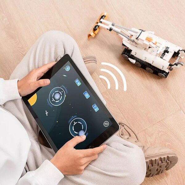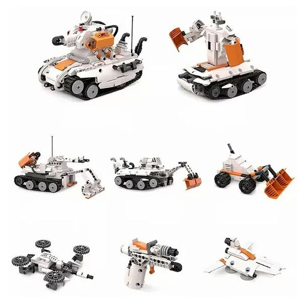 Состоит и 800 прочных деталей, совместимых с конструкторами LEGO. Можно собрать 8 различных моделей: танк, робот, беспилотник, экскаватор, погрузчик, дрон, пистолет и звездолет.