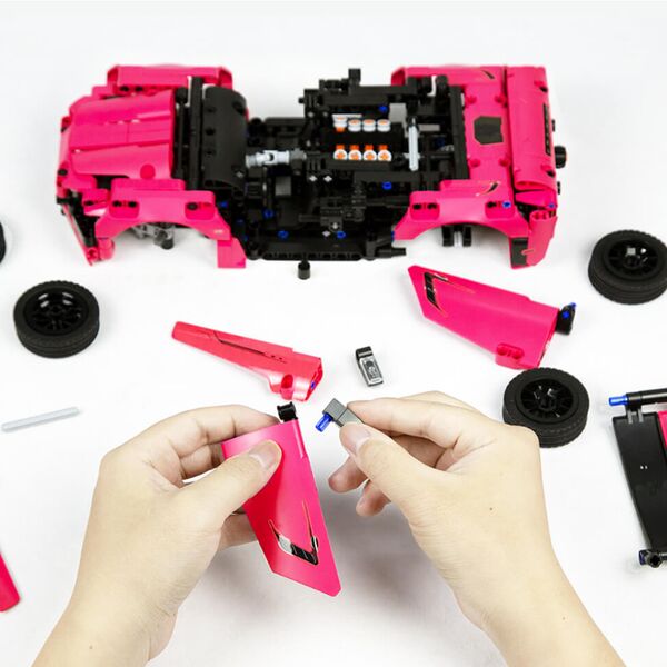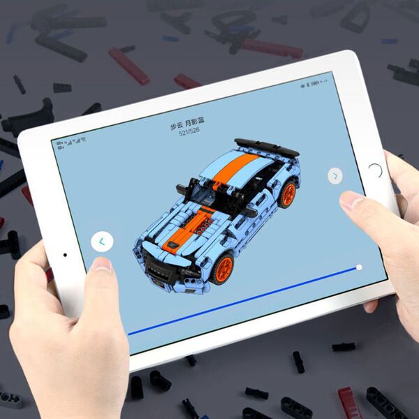 Автомобиль имитирует конструкцию V-образного восьмицилиндрового двигателя с передним приводом. Количество деталей 500 шт. Для того чтобы последовательно собрать модель, вы можете скачать приложение на смартфон, где находится подробная инструкция и точная 3D-модель автомобиля. В самом приложении можно разобрать и собрать машину виртуально.
