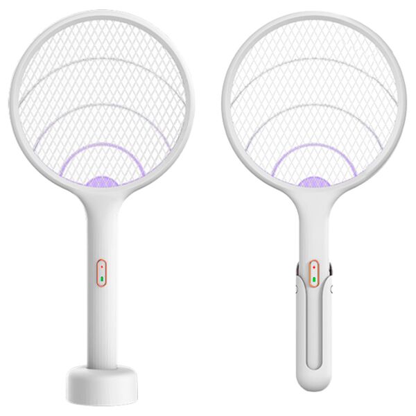 Это электрическая мухобойка, устройство для уничтожения москитов, комаров, мух и мошек, привлекает насекомых с помощью света и мгновенно поражает статическим электричеством. Мухобойка представляет собой трехслойную конструкцию, два внешних слоя – защита от случайного прикосновения человеком, а внутренний слой представляет собой сетку с ячейками 3х3 мм находящаяся под напряжением для мгновенного убийства комара. Сила тока менее 10 мА безвредна для человека, а отсутствие летучих химических соединений не оказывает воздействия на здоровье. Москиты перемещаются, ориентируясь по источникам света, встроенные в мухобойку. Можно использовать двумя способами: как ручную мухобойку и как настенную антимоскитную лампу, специальное крепление, входящее в комплект, позволяет прикрепить мухобойку к стене. Для управления режимами мухобойки на ручке расположен 3-позиционный переключатель, при активации одного из режимов включается индикатор, второй индикатор показывает степень зарядки.