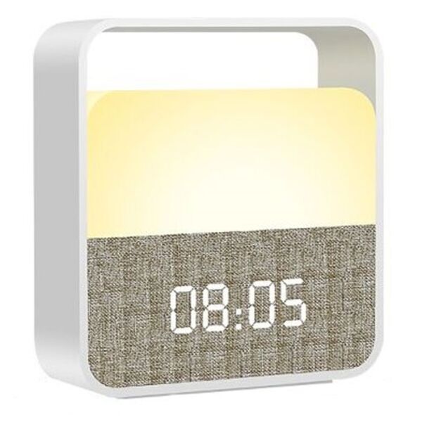 переносной будильник 2 в 1, устройство совмещает в себе функции будильника и ночника. Цветовая температура продукта 3000K. Номинальный ток: 0.6A. Номинальное напряжение:5 В. Мощность продукта: 3 Вт. Источник питания: встроенный аккумулятор.