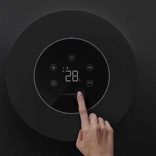 Вентилятор использует запатентованную вращающуюся конструкцию, которая выдувает теплый воздух в закрытом состоянии и прохладный ветерок в открытом. Кроме того, благодаря полупроводниковому керамическому нагревательному элементу горячий воздух подается сразу после запуска. С помощью приложения можно отрегулировать нагрев и расстояние подачи тепла в каждом углу комнаты. Также через приложение можно установить разные углы подачи воздуха от 30 до 150 градусов, охватывая большую площадь.