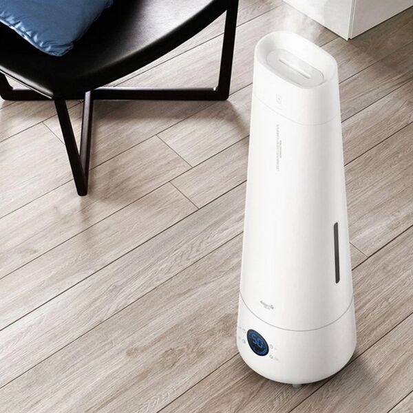 На корпусе прибора имеются 4 сенсорные кнопки управления: регулировка влажности, регулировка производительности, ночной режим работы, таймер отключения. Так же доступно дистанционное управление с помощью пульта. Выпускное отверстие расположено сверху. Его конструкция выполнена таким образом, чтобы увеличить эффективный угол увлажнения и обеспечить высокий подъем водяного пара. Автоматическое отключение при отсутствии воды. Ёмкость резервуара для воды 4 л. Производительность устройства составляет 350 мл/час – полной заправки резервуара хватит для работы в течение 12 часов. Вода, залитая в резервуар, раскладывается до очень мелких крупиц размером 1-5 мкм, что позволяют водяным частицам проникать в волосы и кожу, глубоко питая и насыщая их влагой. Уровень шума менее 35 дБ. Площадь увлажнения 20-30 м2.