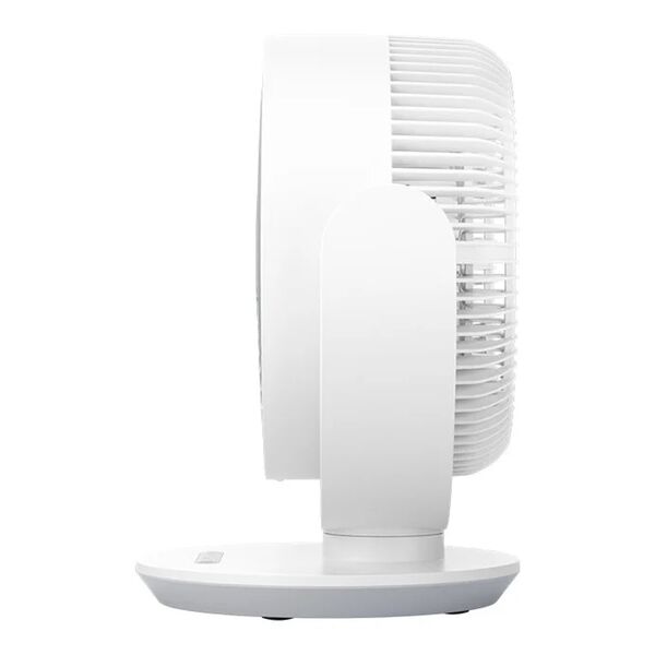 Устройство размещено на округлом основании с поворотной «колыбелью», в которой находится вентилятор. Необычный дизайн позволяет развернуть вентилятор под любым углом, создавая иллюзию свежего приятного ветра. Мощный трехлопастный вентилятор полностью заключен в решетку из прочного пластика. Удобно управлять устройством через фирменное приложение или при помощи голосовых команд. Сохранен также ручной способ управления при помощи кнопок. Вентилятор свободно вращается по горизонтали на 120° и по вертикали на 90°. 5 уровней обдува. Устройство пропускает до 18 м3 воздуха в минуту, воздушный поток легко преодолевает расстояние до 10 метров. Он может работать в паре со сплитом, эффективно разгоняя, как теплый, так и холодный воздух. Также с его помощью можно улучшить проветривание небольших помещений – просто поставьте вентилятор рядом с окном, и он будет разгонять свежий воздух по комнате. За 24 часа беспрерывной работы потребляется 0.56 кВт.