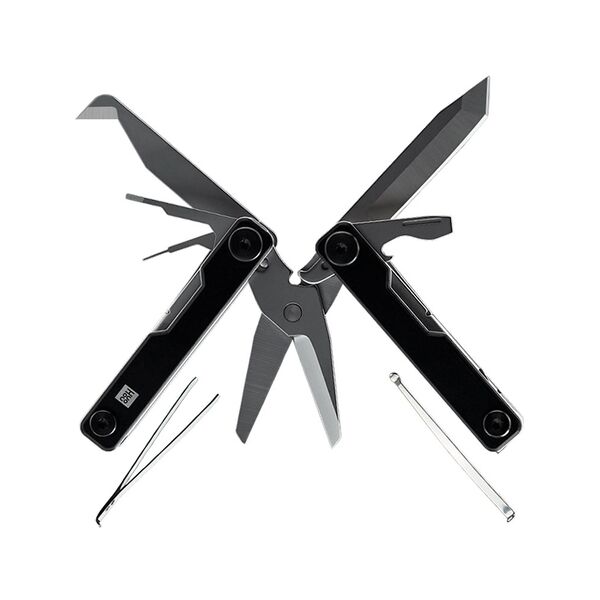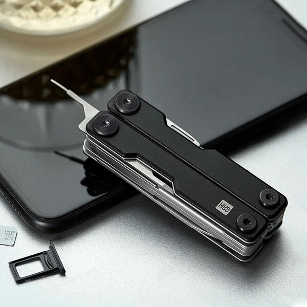 Cочетает в себе возможности сразу 11 различных инструментов. Среди которых: кольцо для ключей, открывалка для бутылок, мини отвертка, нож, плоская отвертка, булавка для SIM-карты, крючок, нож для вскрытия посылок, пилка для ногтей, пинцет, ножницы.