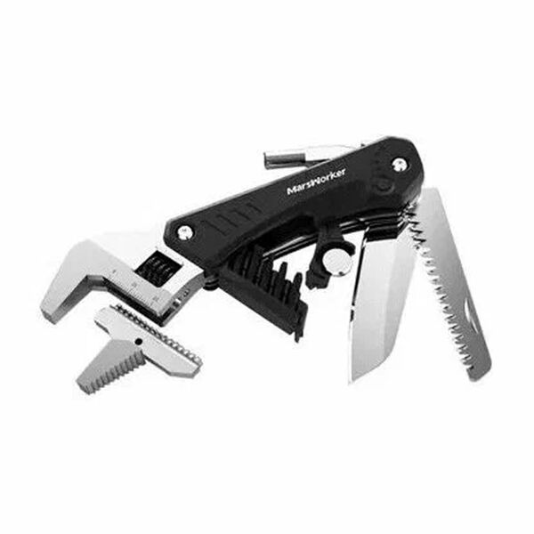 MarsWorker Multifunction Hummer MSHH001 можно использовать как по назначению, так и в качестве ножа (обычного и зубчатого), фонарика, крестовой или плоской отвертки, шестигранного ключа и так далее. Обеспечивается универсальность применения. Изготовлен из нержавеющей стали, имеет прочный и долговечный корпус.