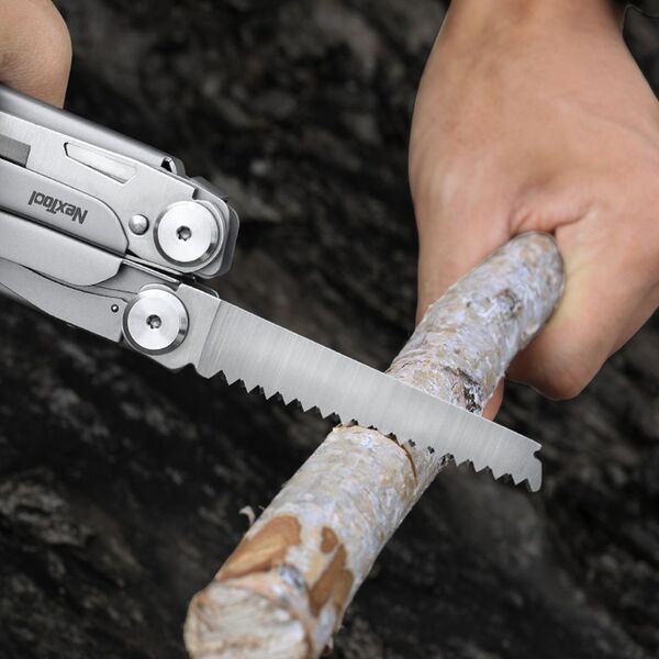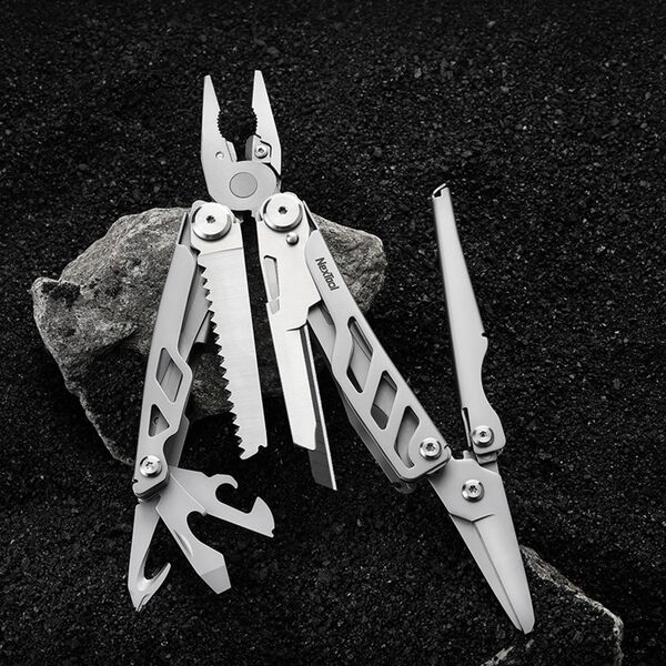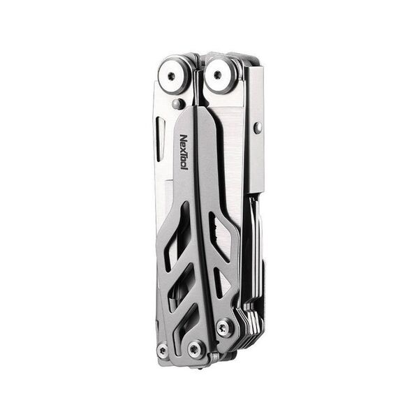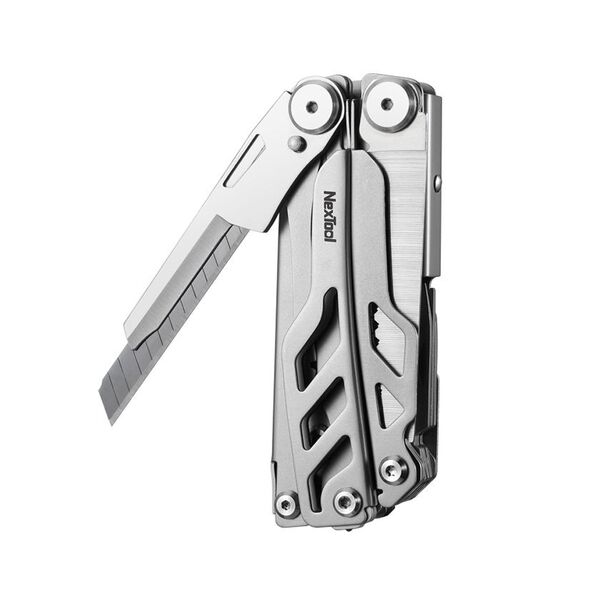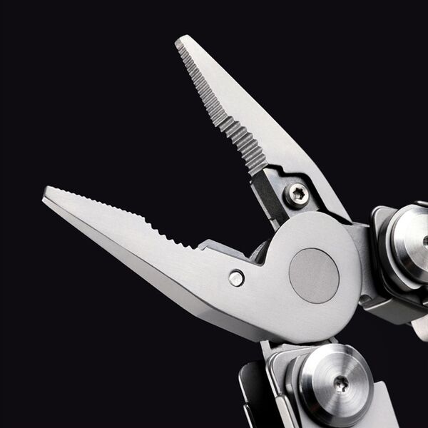 Функции: крестовая отвертка, кусачки для жесткой проволоки, кусачки для тонкой проволоки, кусачки для толстой проволоки, линейка, нож с возможностью замены лезвия, нож для зачистки проводов, консервный нож, ножницы, открывашка для бутылок, пила по дереву, плоская отвертка, плоскогубцы с игольчатым наконечником, стандартные плоскогубцы, стеклобой, стропорез.