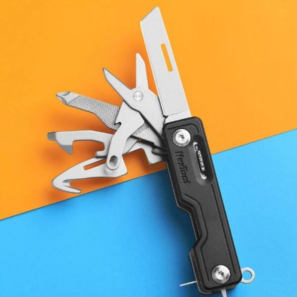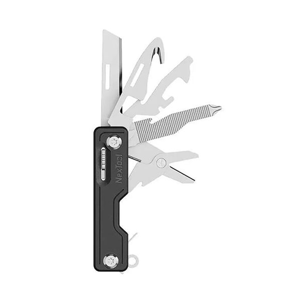 Функции: нож, аварийный молоток для разбивания стекла, открывалка консервных банок, стропорез (разрежет ремень, веревку, шнурки), ножницы, держатель для телефона (вертикальный и горизонтальный), ключ для извлечения сим-карты, напильник, открывалка для бутылок, отвертка.