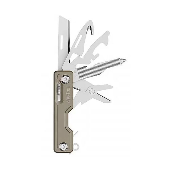 Функции: нож, аварийный молоток для разбивания стекла, открывалка консервных банок, стропорез (разрежет ремень, веревку, шнурки), ножницы, держатель для телефона (вертикальный и горизонтальный), ключ для извлечения сим-карты, напильник, открывалка для бутылок, отвертка.