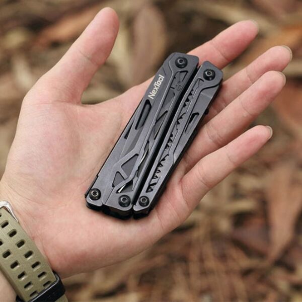 Комплектация: Плоскогубцы с длинным носом, стандартные клещи, тонкие проволочные клещи, пила, крестовая отвертка, кресало, шлицевая отвертка, открывалка для бутылок, нож, ножницы.