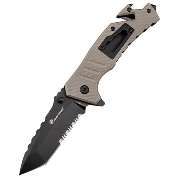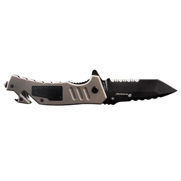 Прочное лезвие изготовлено из хромистой нержавеющей стали с большим содержанием углерода. Оно устойчиво к коррозии, поэтому имеет длительный срок службы. Быстро разрезает веревку и другие предметы. Ручка ножа износостойкая и имеет противоскользящую структуру, благодаря этому мультитул удобно держать в руке. Нож можно использовать в качестве штопора, канатореза, гаечного ключа и конуса при любых погодных условиях. В задней части корпуса ножа расположен специальный зажим крепление.