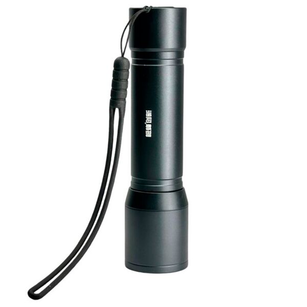 Благодаря кнопке в основании фонарик может переключаться между тремя режимами освещения: низкая яркость, высокая яркость и режим мерцания. Ремешок.