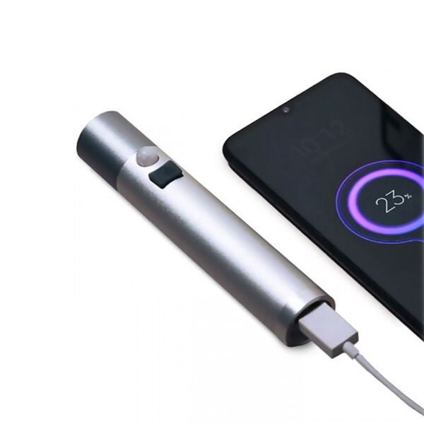 Имеет 4 режима: высокий, средний, низкий, SOS. Датчик движения, настенная док-станция, функция power bank.