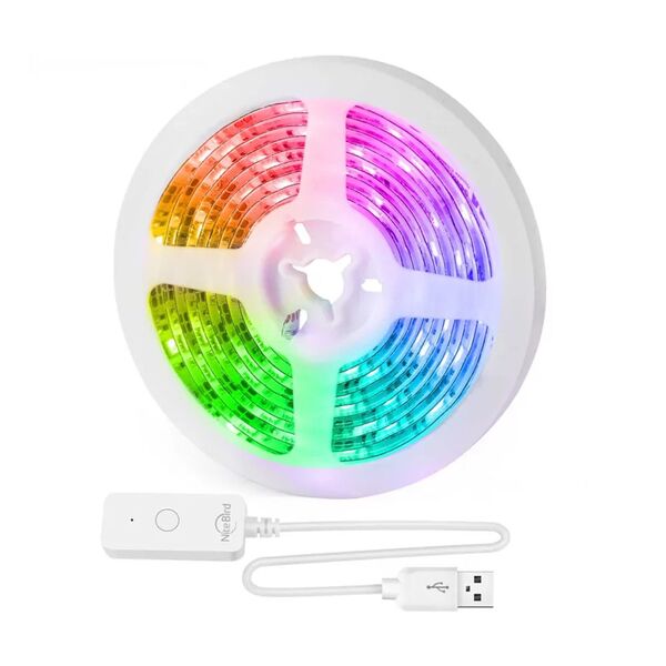 Длина ленты: 2.8 м. Самоклеющаяся. RGB, количество светодиодов: 30 шт/м. Защита от пыли и влаги: IP20. Приложение для управления от производителя - Gosund.