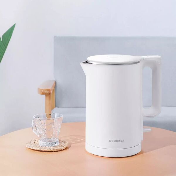 Объём 1.6 л. Мощность 1500 Вт. Управление осуществляется одним тумблером. Кнопка на ручке предназначена для активации функции поддержания тепла (60°С). Крышка с защитой от ожогов, открывается нажатием на кнопку. Закрытый нагревательный элемент. Вращение на подставке на 360°. Отсек для хранения шнура.