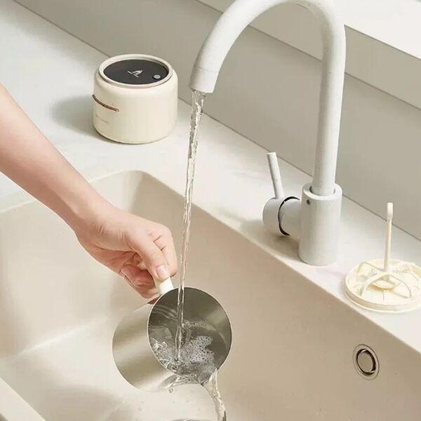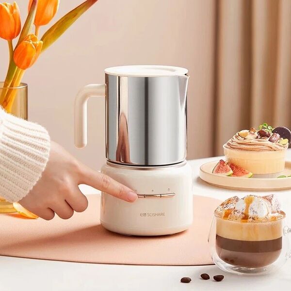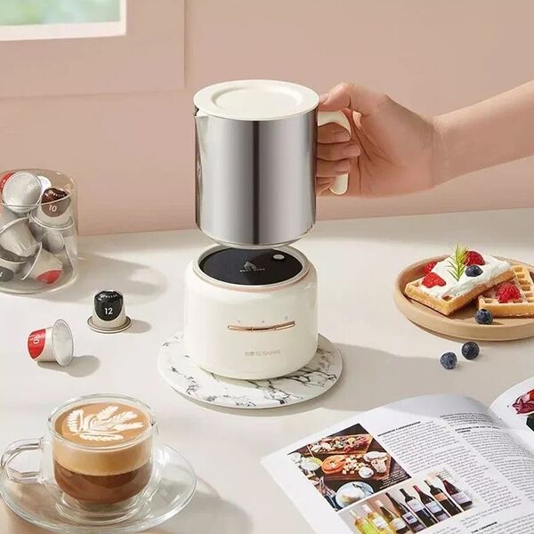 Устройство предназначено для вспенивания и подогрева молока. Максимальный объем жидкости для нагрева – 250 мл, для получения пены – 150 мл. На корпусе находятся механические кнопки управления. Три режима работы: горячая пенка, холодная пенка, подогрев молока.
