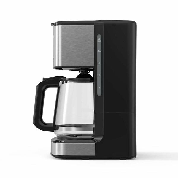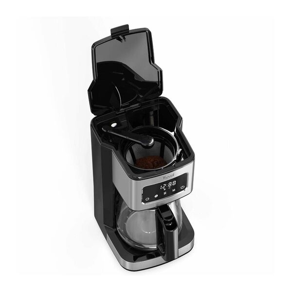 Поддерживает температуру до 30 минут. Использует молотый кофе. Имеет сенсорную панель управления и цифровой дисплей. Объем кофейника: 1.8 л. Мощность устройства: 1000 Вт. Время заваривания: 13 минут. Регулировка крепости напитка. За цикл варки можно приготовить до двенадцати чашек кофе.