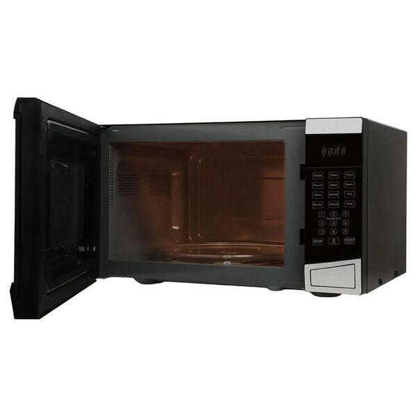Благодаря оптимальному объему камеры 23 л удобно разогревать блюда, размораживать ингредиенты или готовить простые рецепты. Десять автоматических программ позволяют выбрать наиболее оптимальный вариант для работы. Управление осуществляется посредством сенсорных кнопок. С помощью механической клавиши происходит открывание дверцы. На стенки внутреннего покрытия нанесена эмаль легкой очистки. Функция «Защита от детей» позволяет блокировать панель управления, что исключает риск случайного запуска. Диаметр поворотного стола: 27 см, мощность 800 Вт, встроенные часы.
