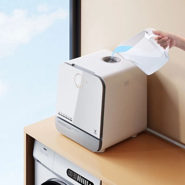 Посудомоечная машина рассчитана на 4 комплекта посуды. Компактное устройство, не требующее специального подключения к воде с возможностью автономной установки и работы. Размещение в любом месте на кухне, а также легкое перемещение при необходимости. Управление посудомоечной машиной со смартфона через приложение Mi Home в общей экосистеме смарт-продуктов, поддержка работы с Алисой от Яндекса. Электронная панель управления на корпусе с LED дисплеем. Низкое потребление воды - ~5л на полный цикл. Пять программ мойки, в том числе деликатная и для детской посуды. Сушка посуды теплым и холодным воздухом + обработка ультрафиолетом. Функция мытья фруктов и овощей. Есть подключение к водопроводу. Номинальная мощность 900 Вт.