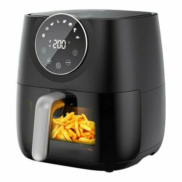 Электрический аэрогриль, который предлагает удобный и вкусный способ приготовления пищи без использования масла. Объем корзины составляет 5,7 литра, позволяя готовить большие порции для нескольких человек. Равномерное приготовление обеспечивается благодаря циркуляции воздуха на 360° внутри чаши, что позволяет достичь хрустящей картошки и сочной курицы без излишнего использования жира. Сенсорная панель управления обеспечивает удобное управление и выбор из восьми встроенных программ приготовления, а также позволяет установить нужную температуру и таймер. Кроме того, аэрогриль оснащен антипригарным покрытием для легкой очистки и автоматическим отключением для безопасности. Отключение нагрева при открытии крышки, ручки с защитой от жара, термоизолированный корпус, переход в режим ожидания при простое. Мощность 1700 Вт. Автоматические программы, отсрочка старта, сенсорное управление.