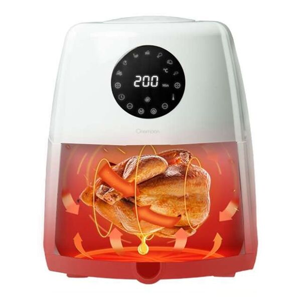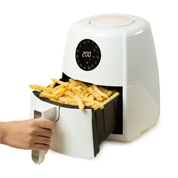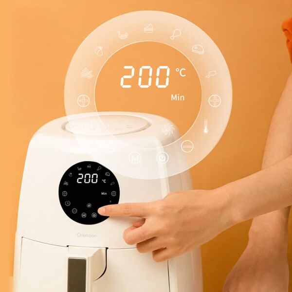 Фритюрница позволяет готовить продукты с минимальным количеством масла за счет 3D обработки горячим воздухом. Сенсорный экран служит одновременно и индикатором выбранного режима работы, и пультом управления. 8 программ приготовления. Встроенный таймер на 60 минут. Доступна регулировка температуры в пределах 80°С - 200°С. Мощность устройства - 1500 Вт. Функции: жарка, запекание, гриль, тост, дегидрация. Антипригарное покрытие чаши.