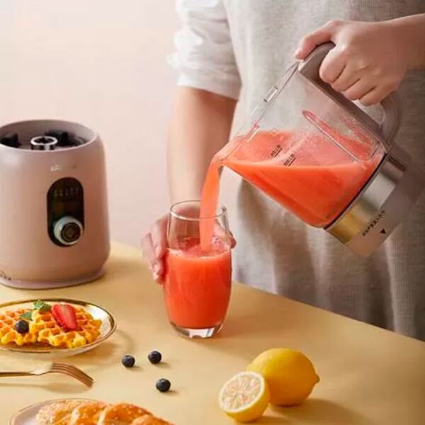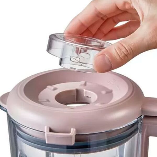 предусмотрена возможность изменения частоты вращения в зависимости от вида измельчаемых продуктов. Объем чаши из боросиликатного стекла составляет 1000 мл, а полезный объем равняется 800 мл. Материал устойчив к нагреву до 120°С. Функция подогрева позволяет поддерживать блюдо в тепле до 12 часов.