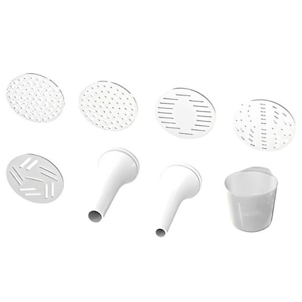 Беспроводная машина работает по принципу пресса и позволяет быстро и удобно сделать необходимое количество домашней пасты. Для начала работы достаточно нажать кнопку на рукоятке устройства. Всего за 15 секунд вы получите порцию лапши собственного приготовления, которую достаточно просто сварить. Специальный скребок, входящий в комплект, помогает регулировать длину макарон под ваш вкус. За один заход получается до 200 грамм лапши. 5 различных насадок подходят для создания различных форм пасты, а дополнительные узкие насадки помогут сделать вкусные домашние колбаски. Дисплей на корпусе устройства показывает уровень заряда аккумулятора. Большая емкость аккумулятора позволяет приготовить до 50 порций пасты без подзарядки. Длительность зарядки составляет 2-3 часа.