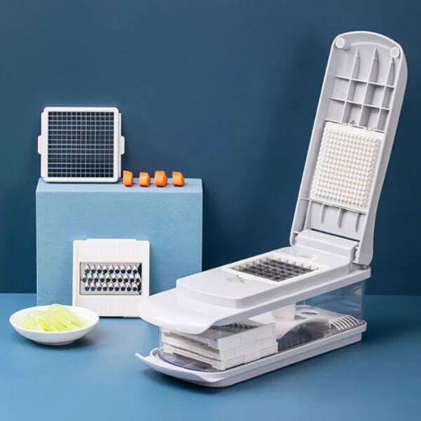 различные типы лезвий из нержавеющей стали для различных нарезки и резки. 1 шт. прозрачный контейнер. 1 шт. х Крышка для овощей. 1 шт. напорная пластина. 1 шт. х Защита для рук. Чистящая Щетка-1 шт. 4 шт. x нарезанные пластины.