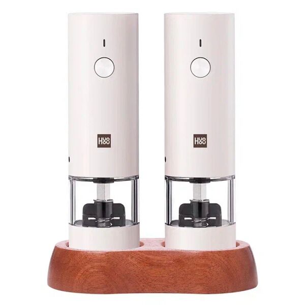Набор электрических мельниц для специй со встроенным аккумулятором и подставкой. Количество степеней помола: 6. Аккумулятор каждой из мельниц: встроенный 300 мАч. Вместимость контейнера для специй: 102 мл (около 66г шариков перца, точный вес зависит от типа специй), минимальная загрузка 20мл.