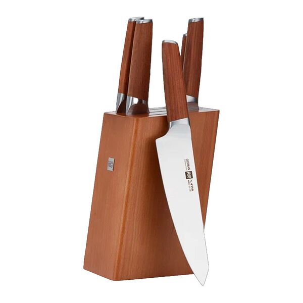 В набор входит 6 ножей и стильная деревянная подставка для хранения. Лезвия выполнены из твердой нержавеющей стали, а рукоятки из удобного деревянного покрытия. В связи с высоким качеством используемых материалов, ножи не подвержены коррозии и будут служить на протяжении долгих лет.