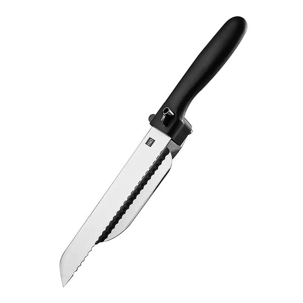 Нож-слайсер для хлеба разработан для нарезки любых хлебобулочных изделий. Отличается оптимальной балансировкой. Длинное лезвие со специальными зубчиками обеспечивает аккуратную нарезку без продавливания корочки, а специальная конструкция обеспечивает точный контроль толщины нарезки.