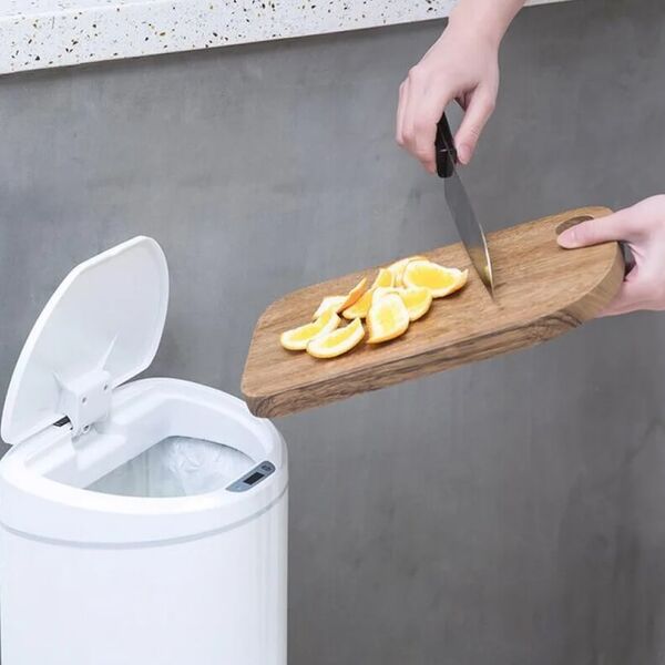 Модель способна в автоматическом режиме открывать крышку, когда вы приближаетесь или подносите руки. Дистанция срабатывания инфракрасного датчика приближения может быть отрегулирована по вашему усмотрению в диапазоне от 6 до 30 см. Объем составляет 8 литров.